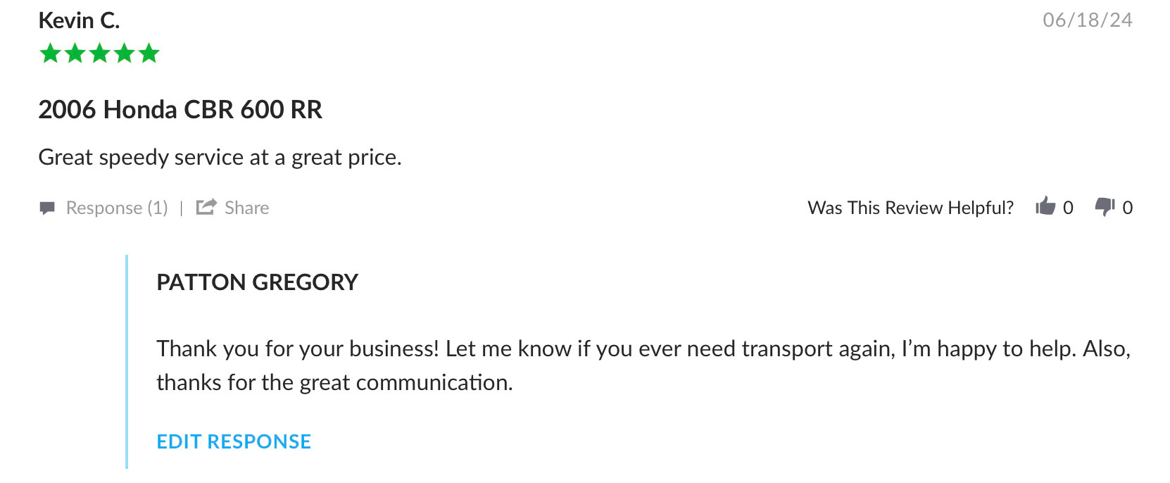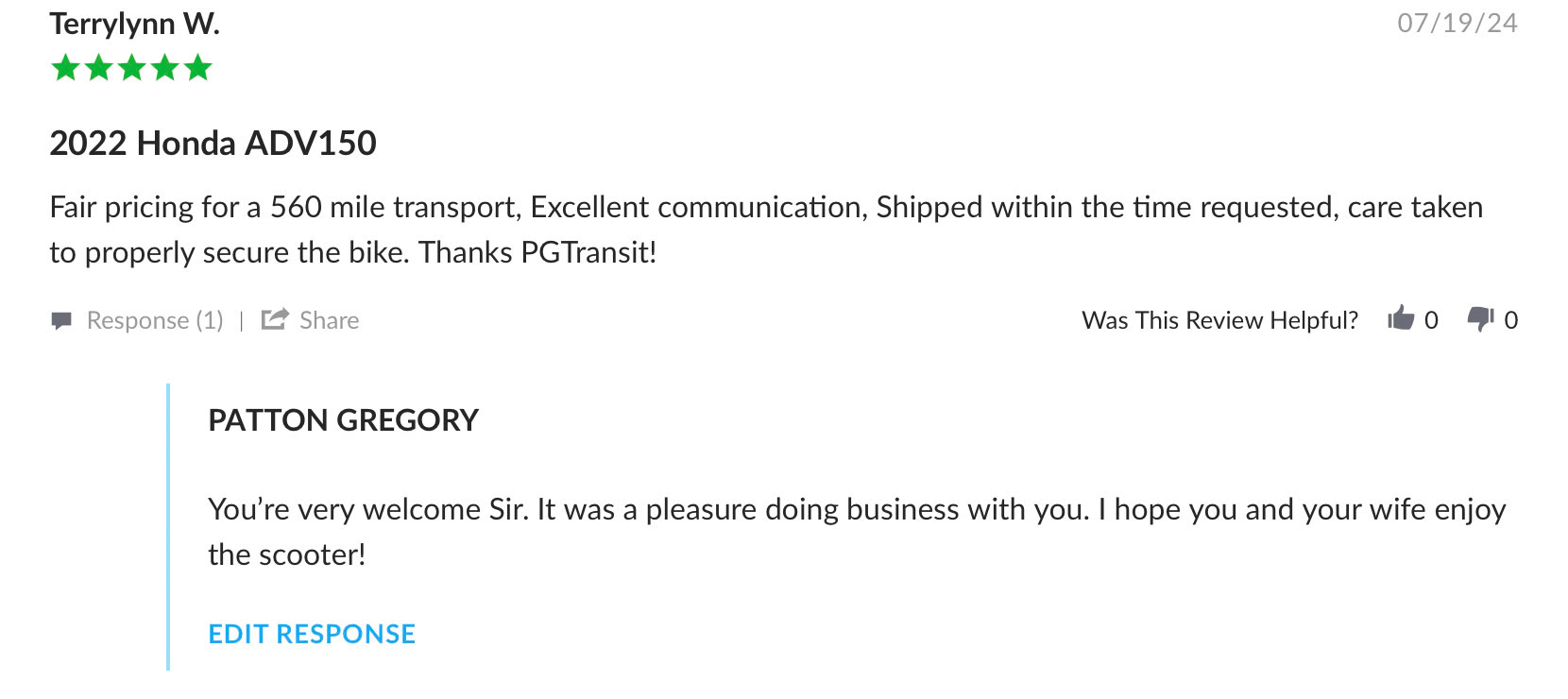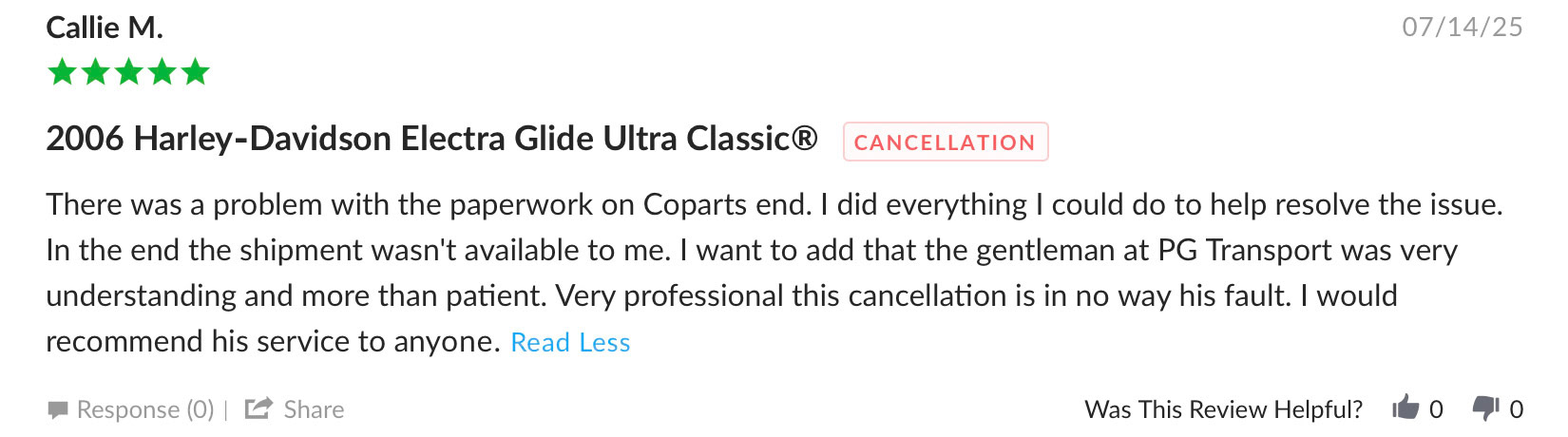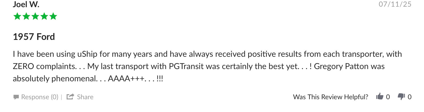 PGĀ Transit takes great pride in providing excellent customer service in addition to a smooth, stress free transport experience. Here a few few testimonials from our clients: